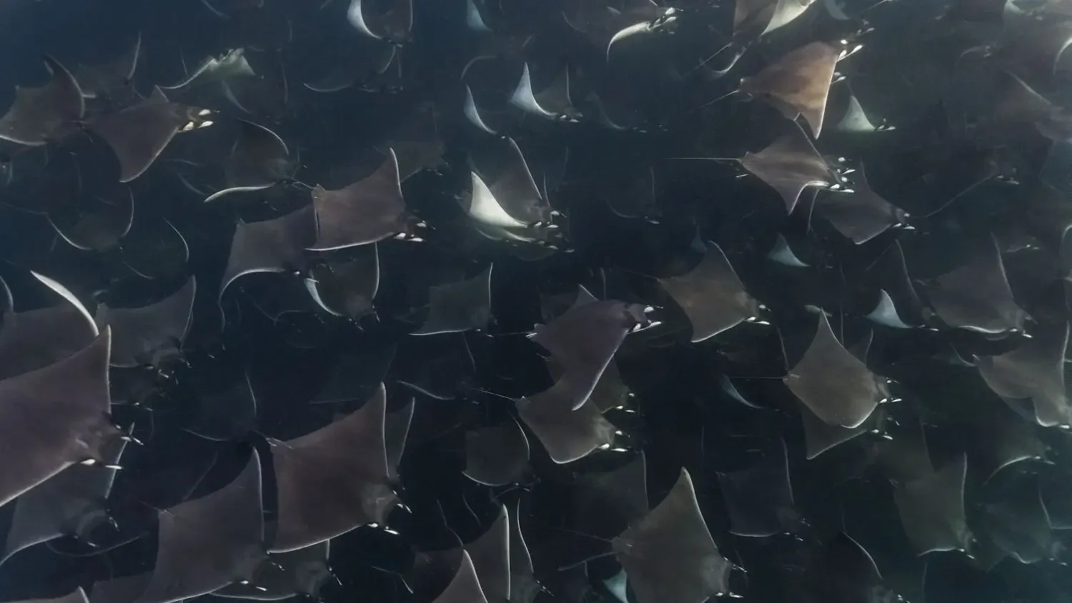A huge school of mobula rays close to the surface. Photo: Yulia Mare